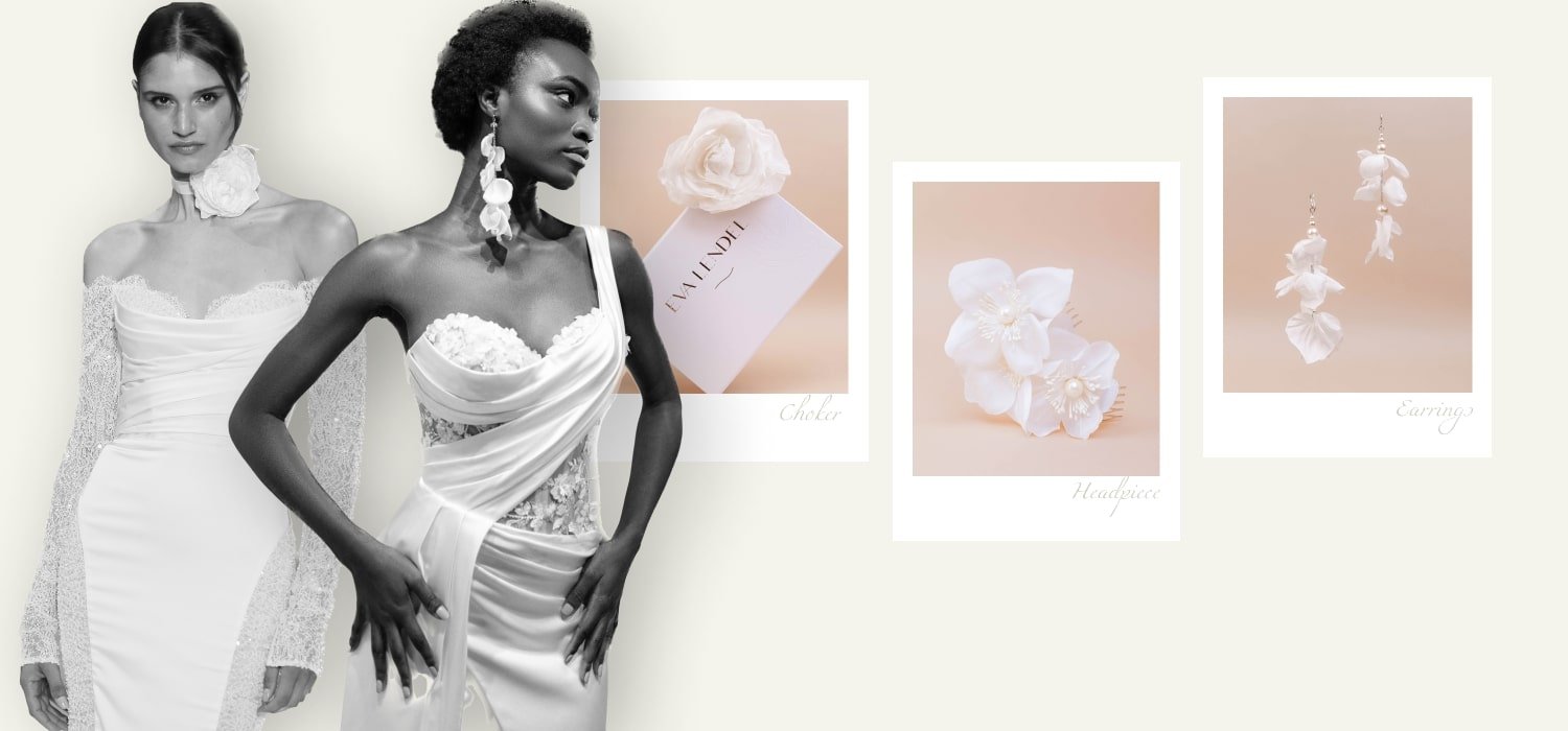 Eva Lendel’s accessory collection finds its perfect muse in the enchanting “Love Spell” dress collection. Immerse yourself in the captivating synergy between these accessories and some of the most sought-after dresses: