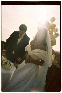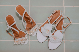 Siendo Alameda Turquesa una parte tan importante en la vida de Carolina, no dudó en calzarse dos sandalias de su firma para el gran día. Para esta ocasión eligió el modelo Anna, con perlas y conchas y, posteriormente, se cambió al modelo Guadalupe, al que añadió un lazo de seda igual al vestido para el cóctel y la fiesta diseñado por su madre. “Tener unos zapatos diseñados por tu madre para un día tan importante como ese es un gesto lleno de amor y significado. Es algo único que siempre recordaré con cariño”, explica la novia.