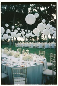 Para la organización contaron con Catarina, de Oh Weddings, que les acompañó en todo el proceso desde el principio. “Nos casamos en un jardín frente al mar con un paisaje espectacular, y la naturaleza que nos rodea es tan fuerte y bonita que quisimos que la decoración y los colores fueran lo más simples posible para no competir con el paisaje. Elegimos el blanco, optando por diferentes tonos de blanco”, comentan los novios.