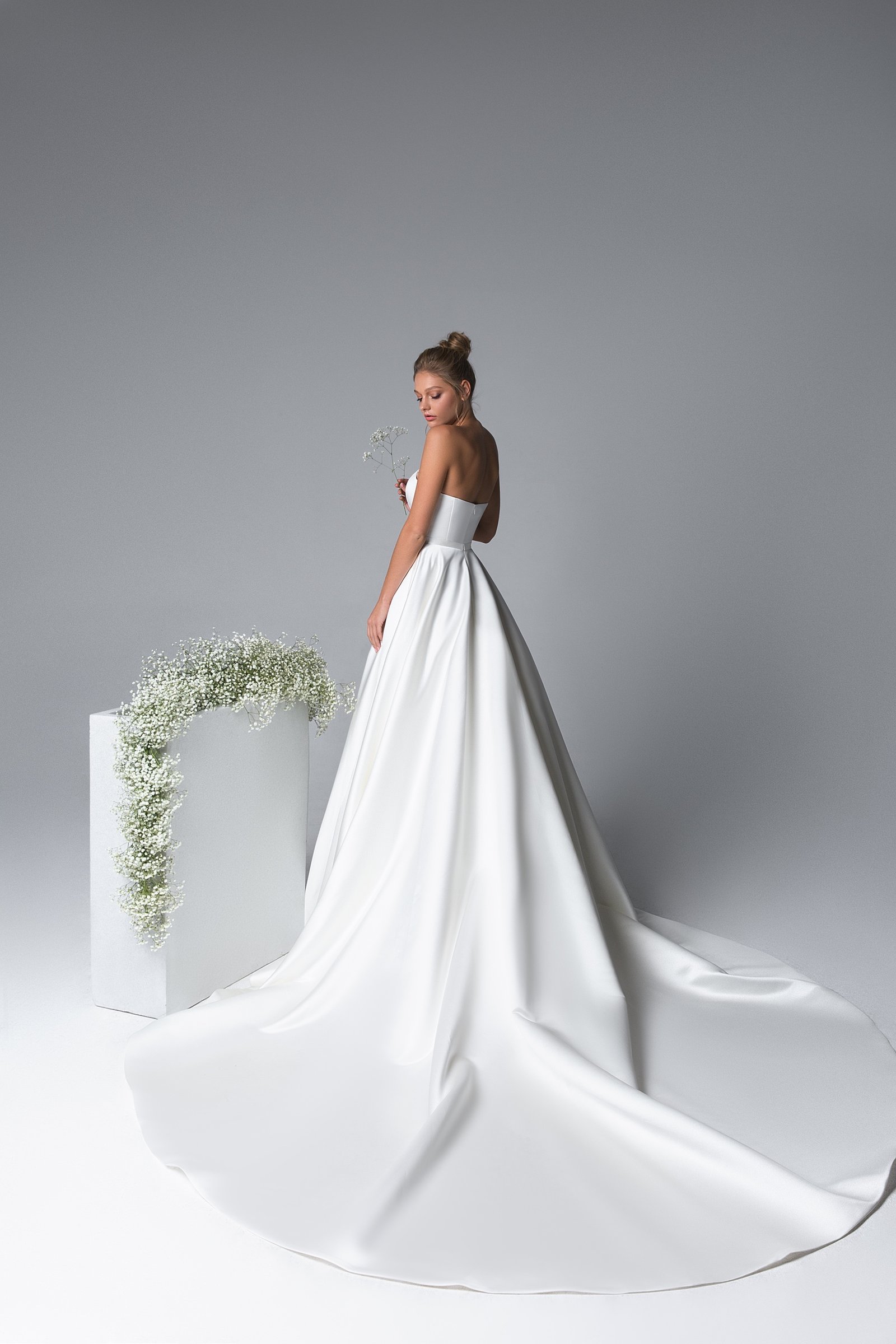 Experience the epitome of bridal elegance with Aria. Its a-line silhouette, draped in the opulence of satin, tulle, is a true testament to luxury and style. Every detail is meticulously crafted, ensuring the bride feels like a vision of perfection.