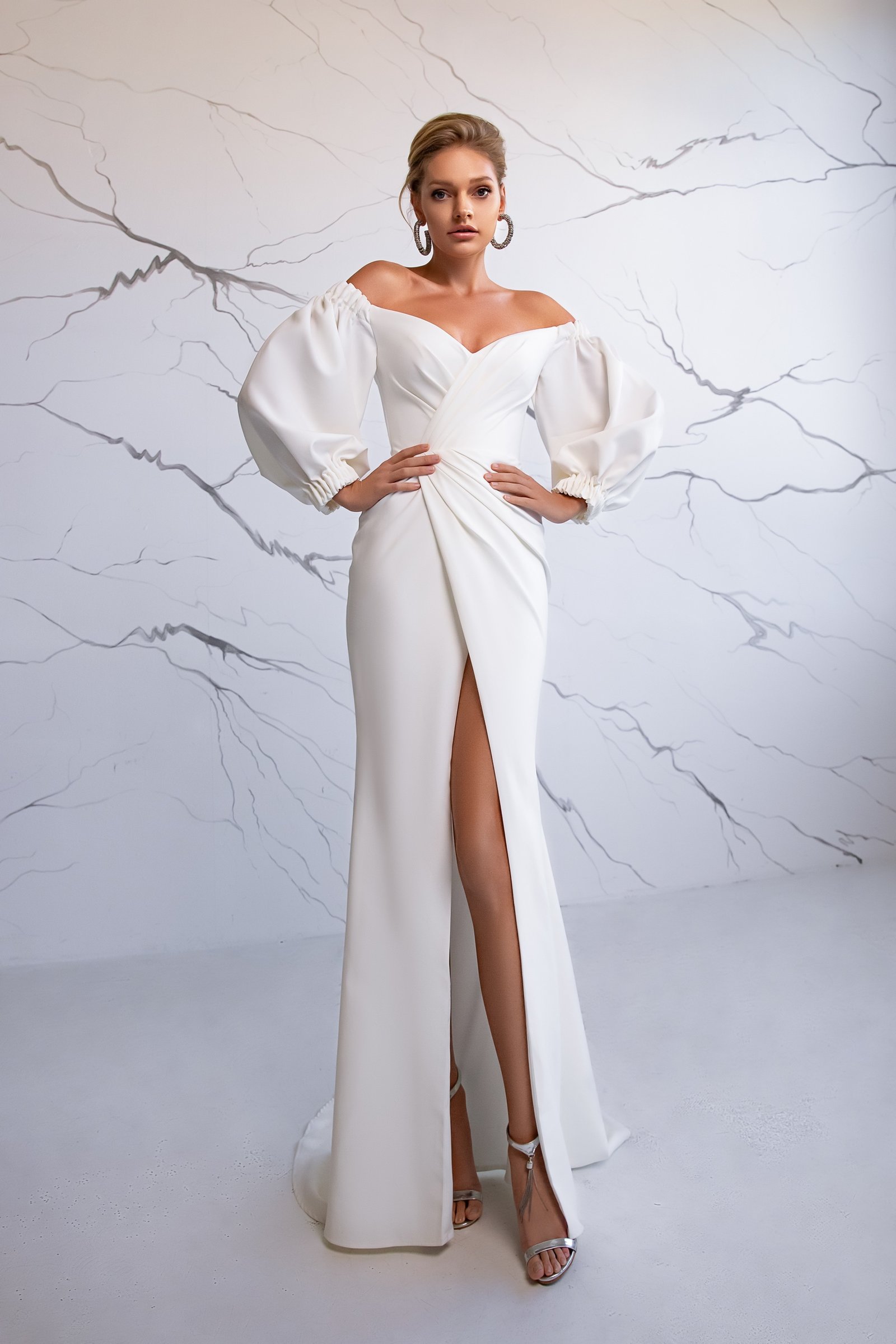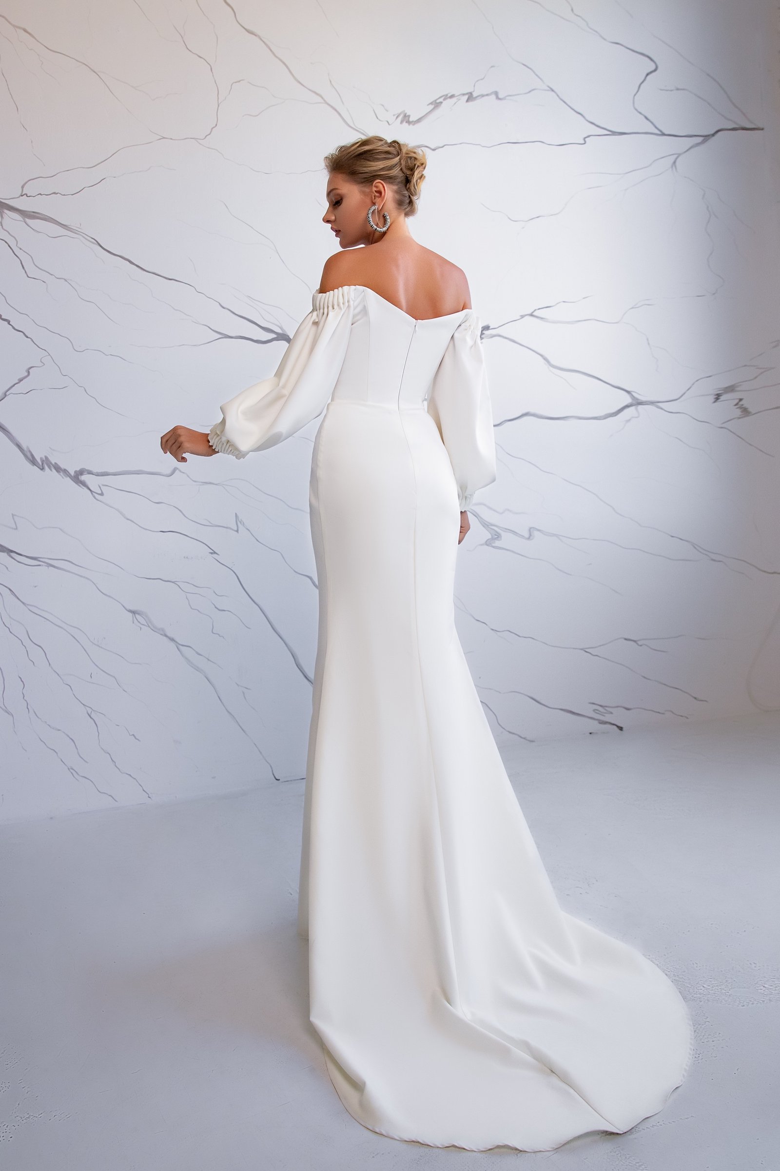 Experience the magic of Charlotta. Its sheath silhouette, combined with the opulence of crepe, is a bridal masterpiece. It's a gown that promises to set the bride apart, ensuring she feels like royalty on her big day.