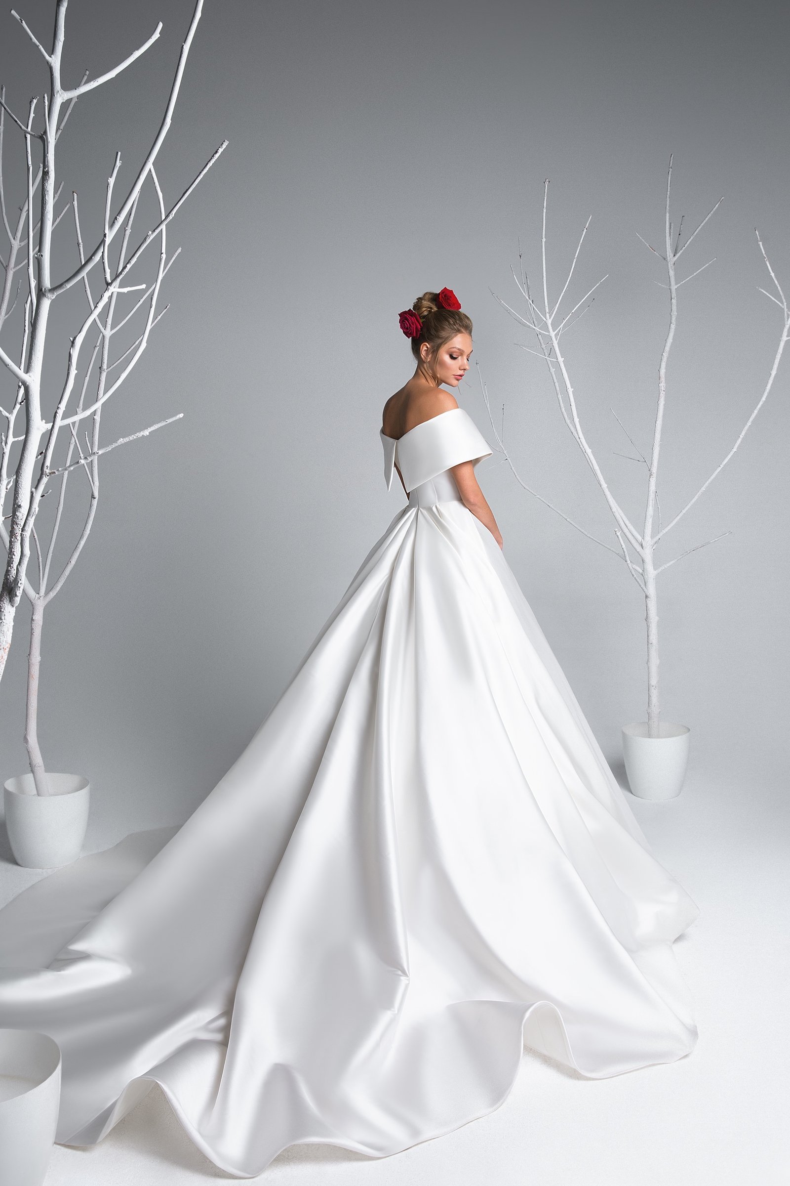 With Emma, bridal dreams turn into reality. Its enchanting ball gown silhouette, paired with the luxury of mikado silk, stands as a testament to elegance and sophistication. Every detail is a promise of grandeur, ensuring the bride feels like a vision of perfection.