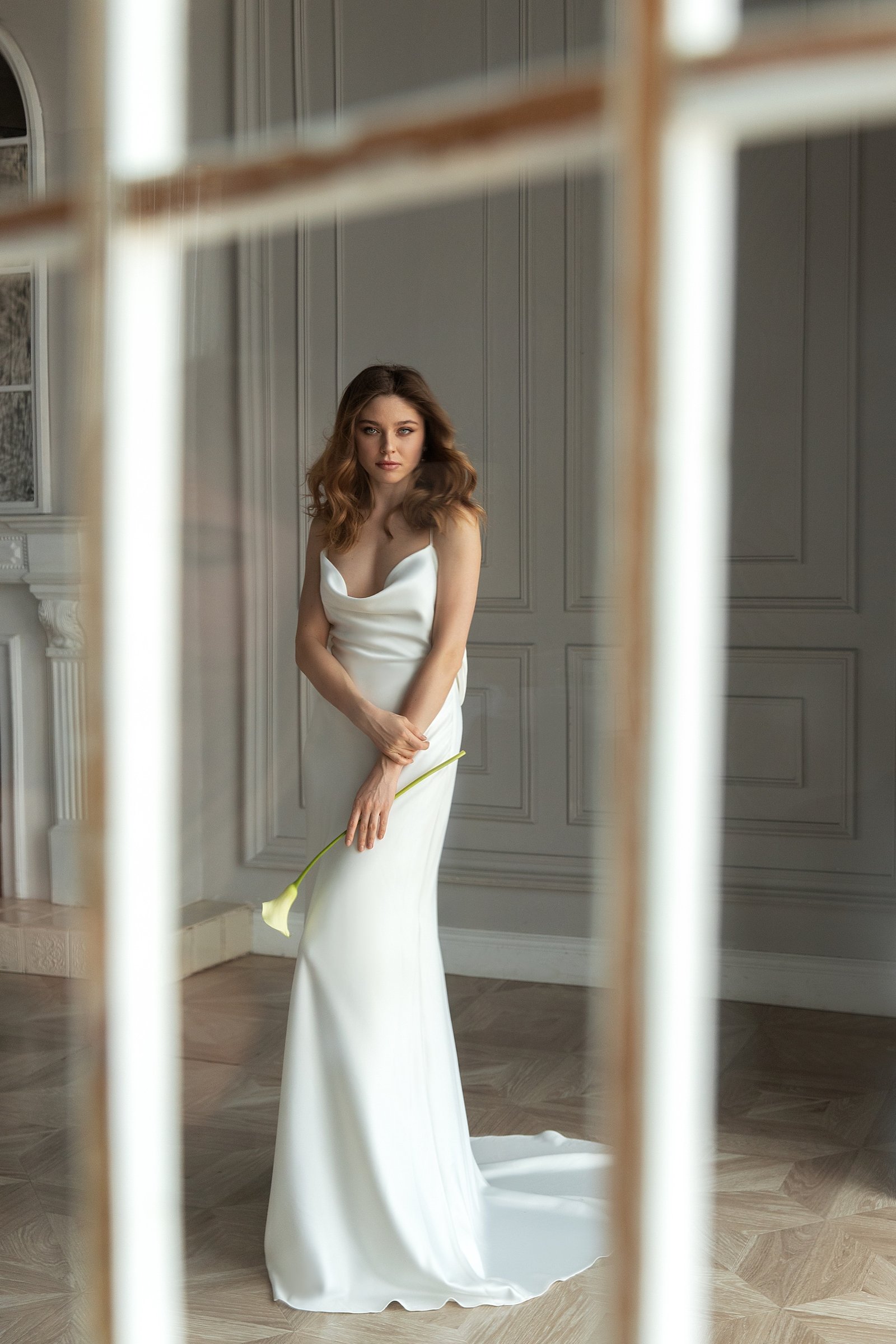 Sia is a celebration of love and commitment. Its sheath silhouette, combined with the opulence of satin, is a true testament to luxury and style. Every detail speaks of its grandeur, ensuring the bride shines the brightest on her special day.
