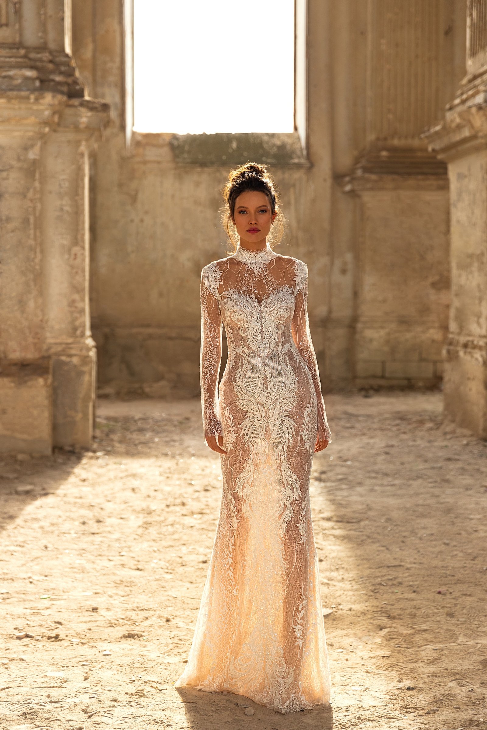 Bredley gown is mermaid tender dress with feminine lace sleeves. The wedding gown is made of luxurious lace. The majestic beck with make each bride bride look spectacular.