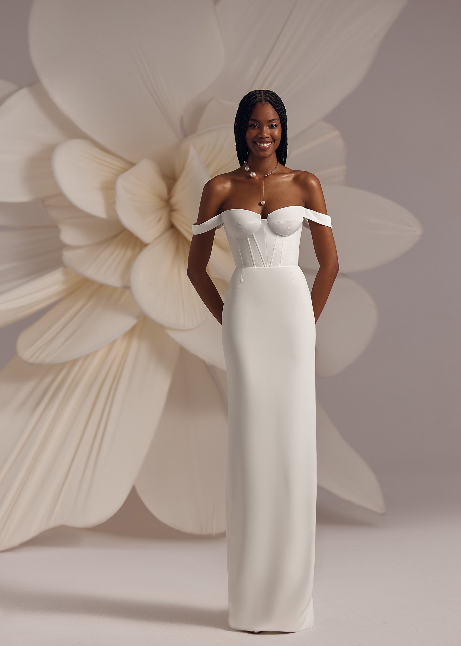 Endi – cold-shoulder keyhole neckline dress with a detachable overskirt.
