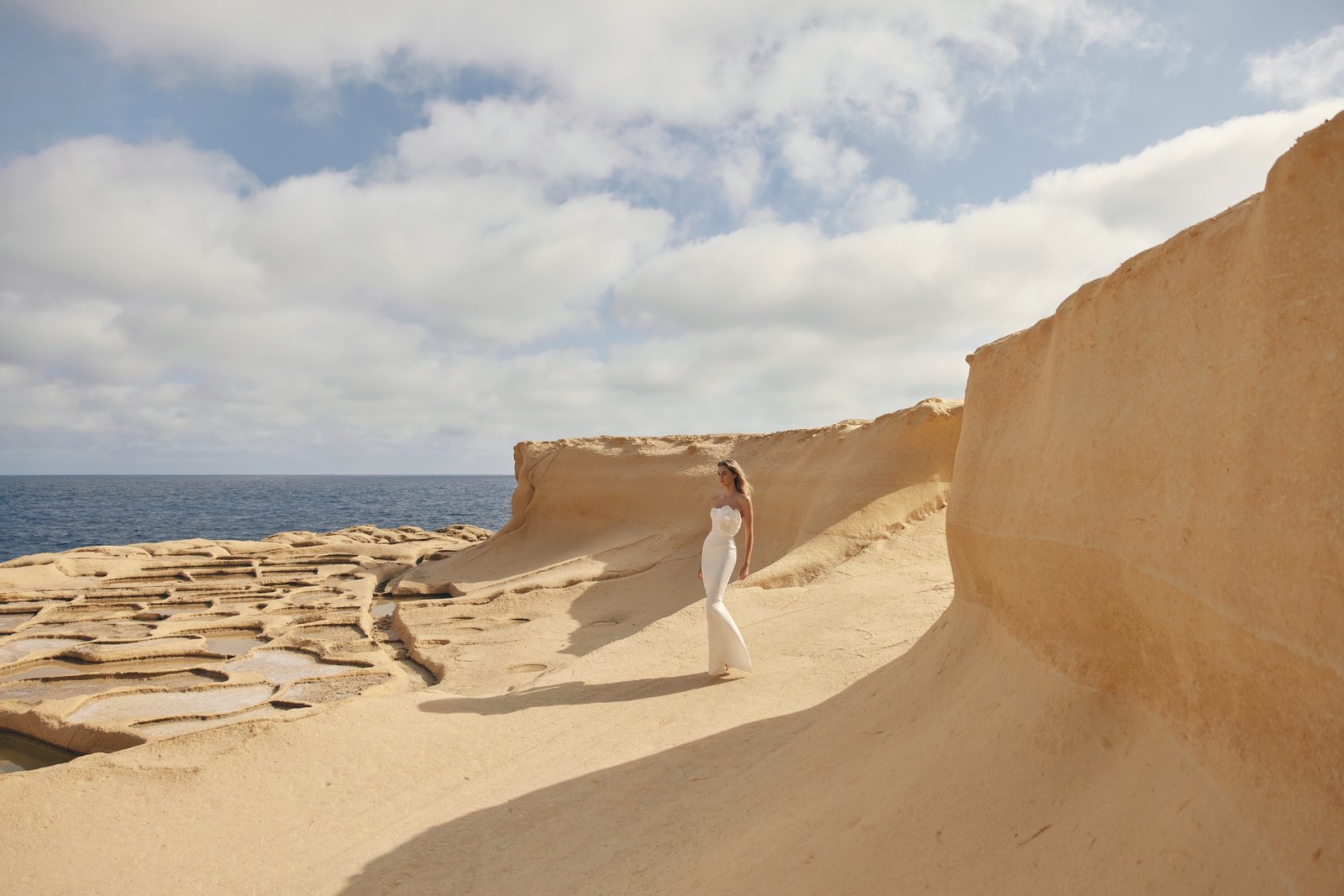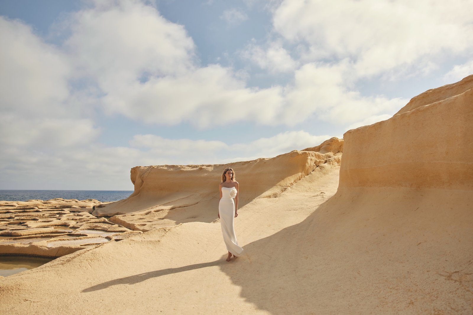 Pierre Dress - a sleek and fitted gown that embodies understated elegance with a touch of charm. The highlight of this look is a voluminous handmade flower that can be easily attached as a brooch. This removable detail allows you to transform the gown from a statement piece into a more classic and minimalist silhouette. Crafted from structured suit fabric, the dress offers a flawless fit that flatters the figure. The back features a delicate lace-up closure for adjustable comfort, while a small slit at the skirt adds a subtle hint of allure.